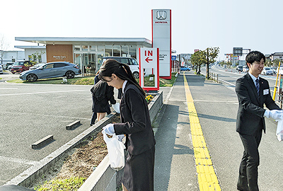 毎月、第二金曜日の朝8:30〜30分程度、全拠点の全スタッフで店舗周辺の清掃活動を行っています。これは、お客様を気持ちよくお迎えすることと近隣の皆様への感謝の気持ちを込めて2013年4月から継続的に行っています。
