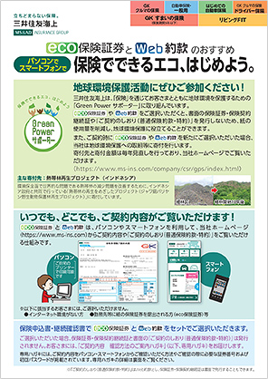 自動車保険のiPad手続き推進による申込書のペーパーレス化、eco保険証券・Web約款のおすすめ推進。社内のコピー用紙の裏紙再利用の徹底を推進いたします。